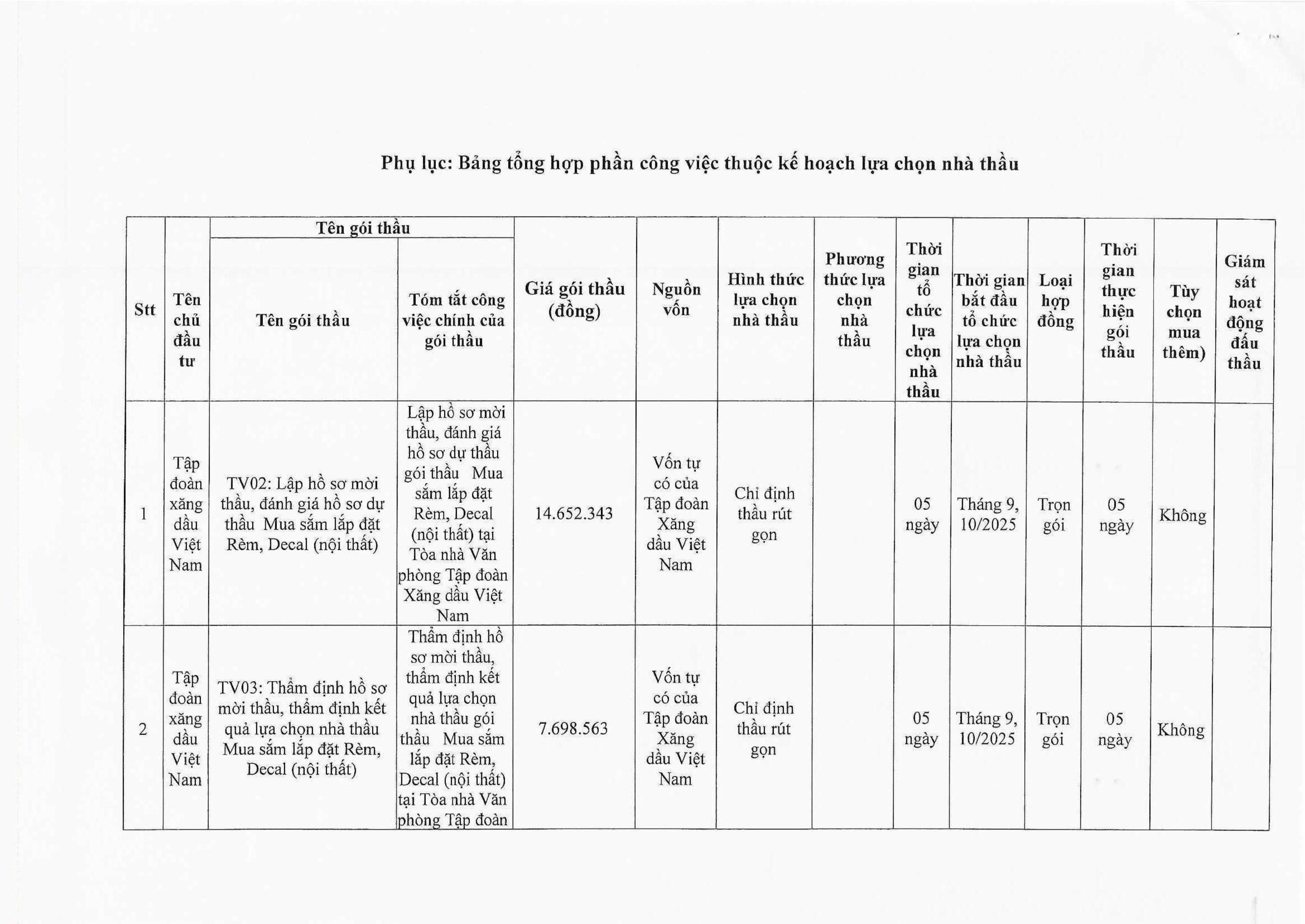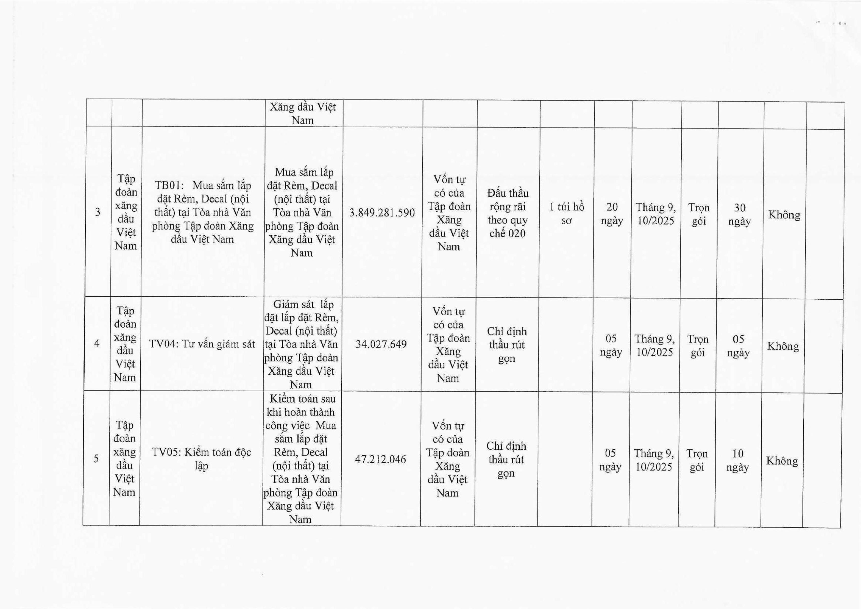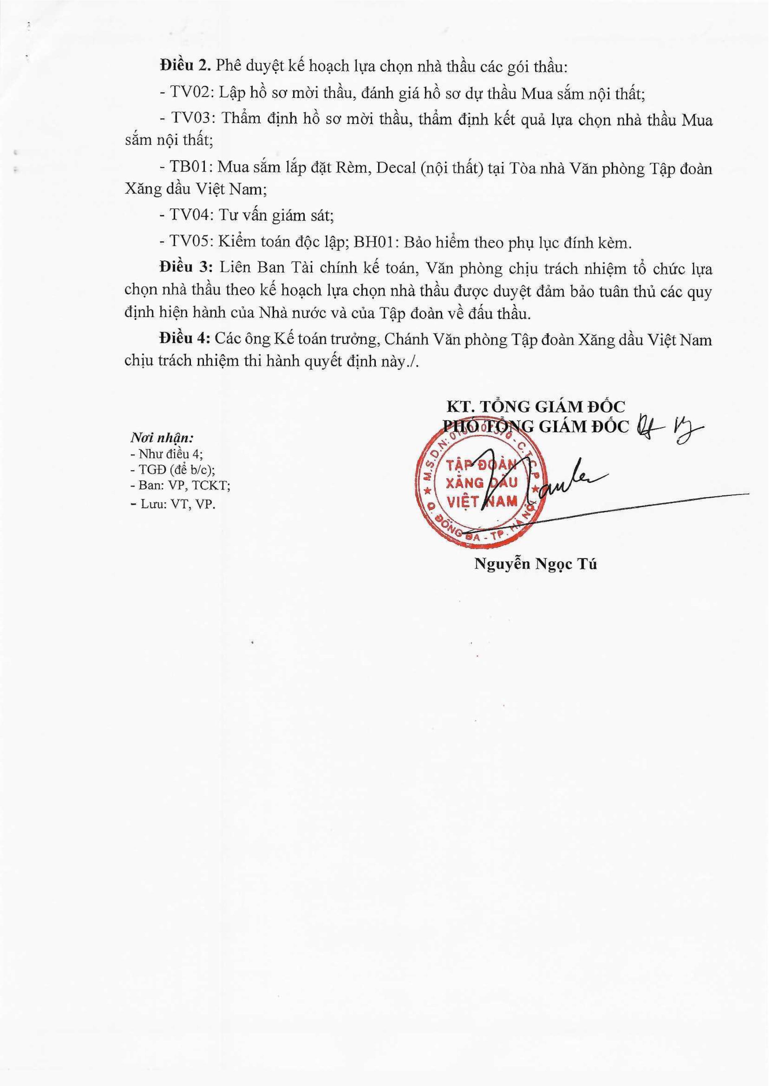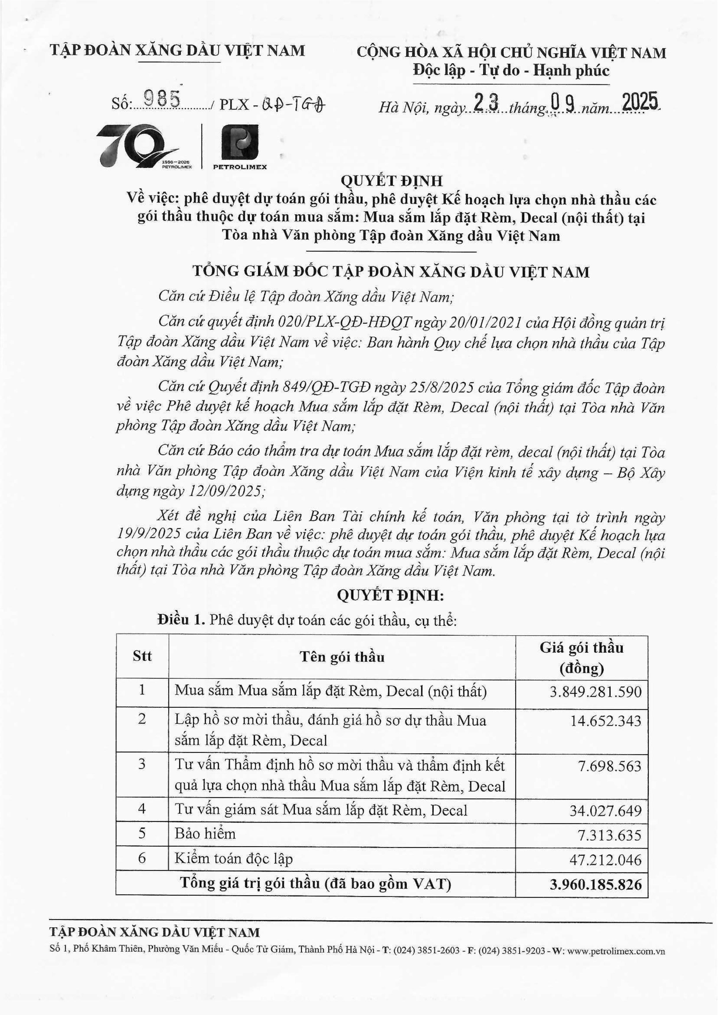 Quyết định V/v: Phê duyệt dự toán gói thầu, phê duyệt Kế hoạch lựa chọn nhà thầu các gói thầu thuộc dự toán mua sắm: Mua sắm lắp đặt Rèm, Decal (nội thất) tại Tòa nhà Văn phòng Petrolimex